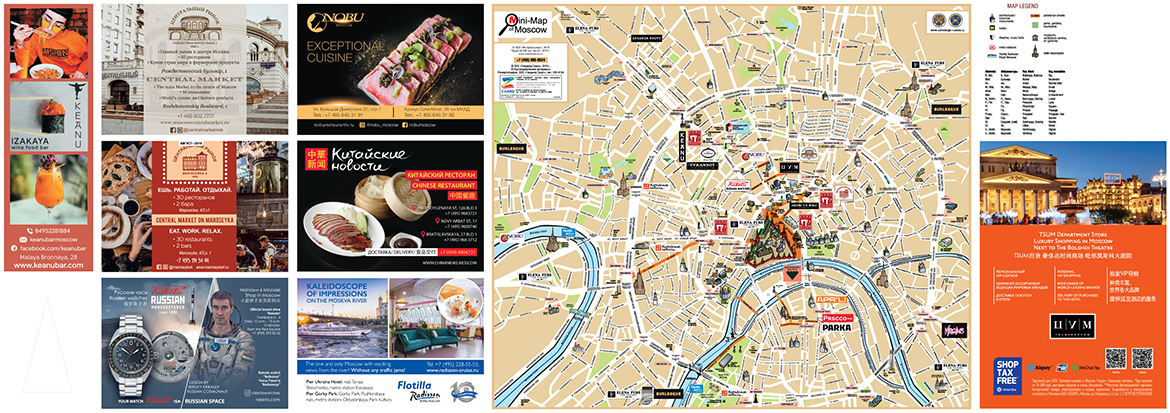 Карта имеет индивидуальную обложку для каждой из 5* гостиниц, что делает Mini map of Moscow визитной карточкой каждого отеля.
